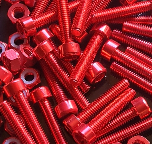 Felgen Schrauben M6x30; Aluminium, farbig eloxiert, aus hochfestem Aluminium, incl. Stopp-Mutter